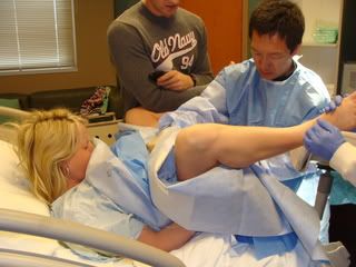 I was feeling pretty great, other then my lack of sleep! Saturday the 6th I went and stood in line for 2 long hours that morning to register Conner for pre-k for the 10-11 school year. It was such a nice day out, so Roy, the kids , Roys brother, the dog and I went to Murray Park in Little Rock later that afternoon and enjoyed the weather, I felt good! We came home, I made dinner. I went and ran 3 miles after dinner, felt fine! Roy, his brother and I were all watching tv and I fell asleep on the couch that night, I woke up at about midnight to a contraction, Roy noticed and made a comment about " braxton hicks contactions? " I said yea and I went to my bed while they stayed up. I noticed a few more through out the night that I woke up to, but did not think anything of it. I had my alarm to get up to get my shower in for church and get the boys ready, but my body woke up on its own about 10 minutes before my alarm was suppose to go off to a strong contraction. At the time, I really wasnt even convinced they were 'real' contractions. I layed there for a bit, told Roy I was having bad pains all night. I timed the 'pains' bc I still wasnt convinced they were even contractions even tho they were debilitating and they were 4 mins apart lasting 45 seconds, I got up to attemt my shower. While I was in the shower I was in soo much pain, Roy could hear me and came in and said Lindsey we are not going to church today are we? I told him yes we are I am fine. Anyways I was still trying to get ready and I was falling over literally all over the place but still was not convinced and I was telling Roy to get the boys ready bc I was taking too long. Roy kept on telling me Lindsey you are in labor, I kept telling him no I'm not. I finally convinced myself I was in labor when I started bleeding really bad and my contractions were less than 2 mins apart . I yelled for Roy to help me finish getting dressed bc I couldnt myself, and told him we needed to leave right away. I made him grab towels because I thought there was a possibility of having the baby in the car! lol! Anyways, I'm sure we would of humored anyone watching. I was yelling at Roy to drive fast then when he would drive fast I would yell at him for going fast and he needed to slow down..lol! He was pretty nervous bc I had to my legs up on the dash and I told him I really felt like I needed to push and he was panicking saying "oh my gosh , oh my gosh, please let us get there" ( I'm sure other drivers were wondering what the heck?! )! Well we did make it to the hospital, I went from 8cm to 9 1/2 cm within being checked right when I got in , to not even 20 mins later. I was told to not push bc my Dr. was almost there, as soon as he got there I pushed for about 10 minutes and Carter was born weighing 7lbs 7oz and 20.5 inches long! He had a ton of hair, much to our suprise! This birth was completely different, even though the back labor was horrible I'd prefer a quick birth anyday over what I had the first two times around! Here are some pics of Carters birth!